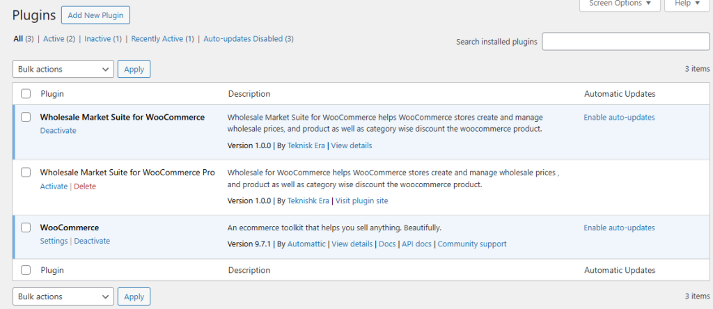 - Install and activate the Wholesale Market Suite for WooCommerce Plugin from your WordPress dashboard.